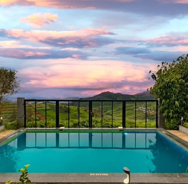Nestled in lush hills, our resort offers stunning views, a refreshing pool, and a delightful multicuisine restaurant amidst tea estates.