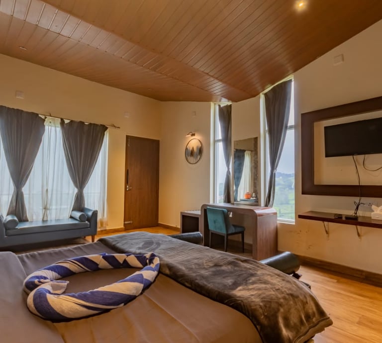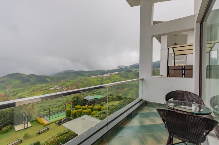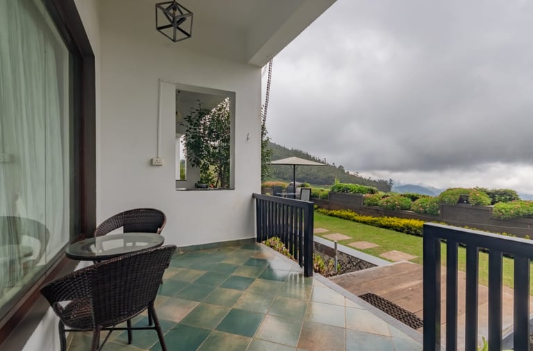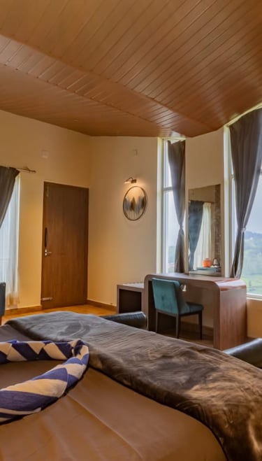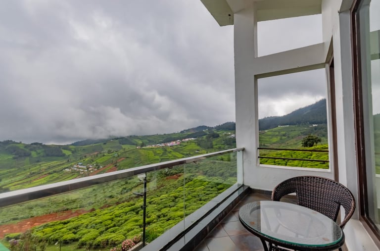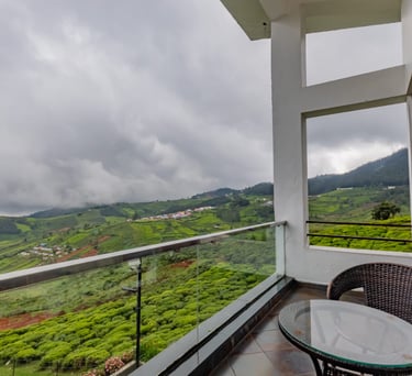 Enjoy breathtaking views of the valley from our Mountain View rooms, designed for comfort and relaxation amidst the serene beauty of lush tea estates.